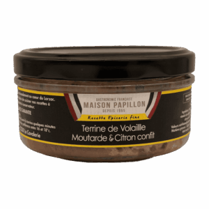 Une terrine de volaille raffinée où la moutarde rencontre la fraîcheur du citron confit, pour un équilibre subtil et gourmand.